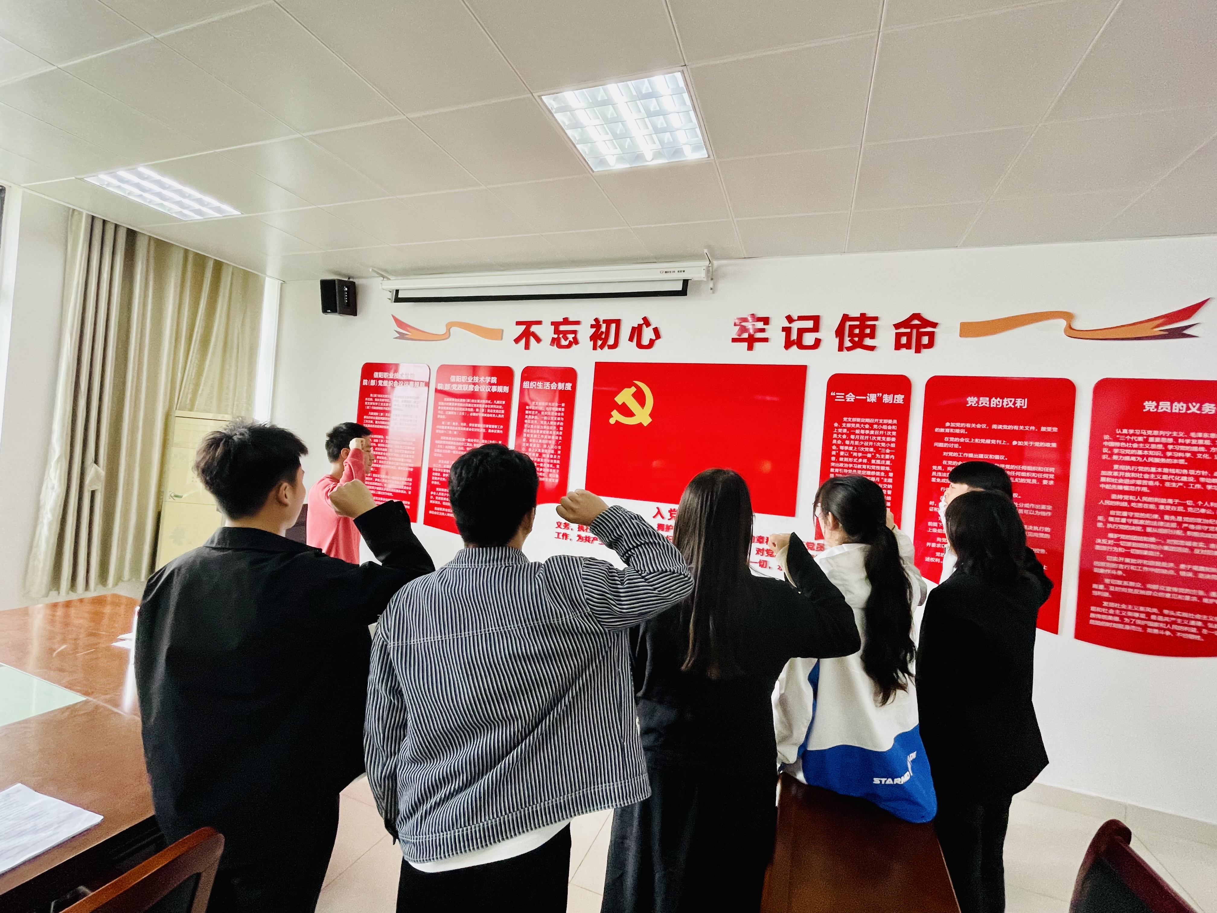 大会上,7名学生党员发展对象依次汇报了个人情况,表明了入党意愿;与会党员教师对申请人能否入党展开讨论,并通过无记名投票,一致同意接收7名党员发展对象成为中国共产党预备党员;学工党支部组织员陈峙带领新入党学生面向党旗庄严宣誓。