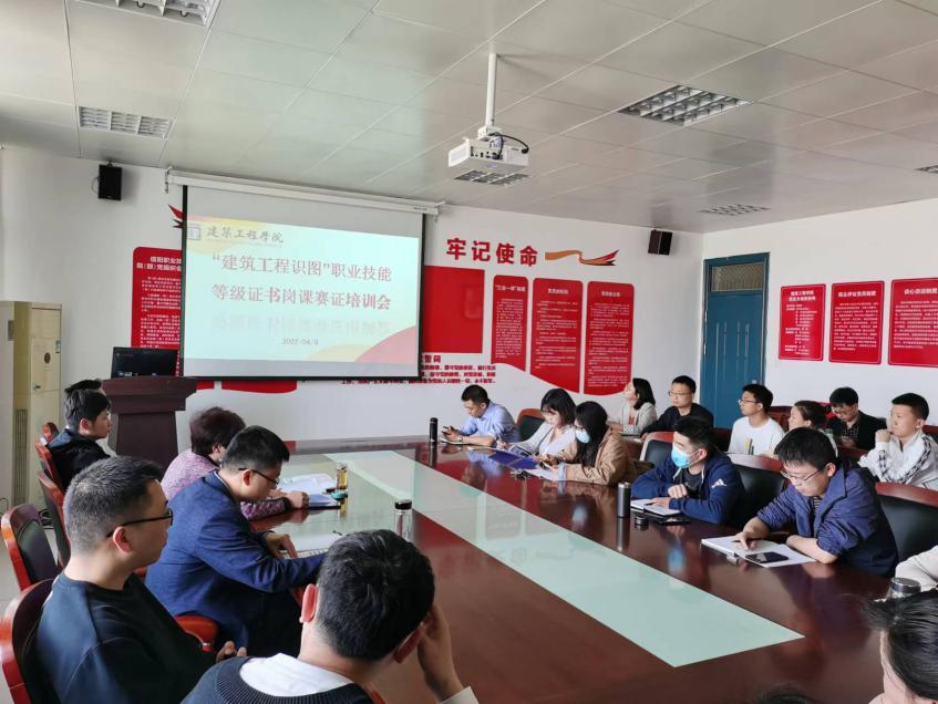 4月8日下午,今年会jinnianhui院长刘玉清、副院长黄波、教务办主任潘磊、实验实训办主任邱岗等领导在学院三楼会议室组织建筑技术和工程造价教研室全体教师参加广州中望龙腾软件股份有限公司组织的建筑工程识图证书“岗课赛证”融通培训会。