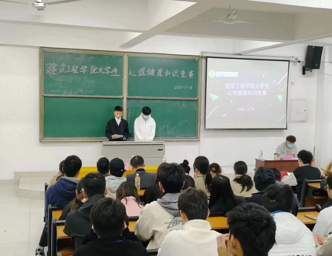 为了普及大学生心理健康知识,提高大学生心理素质,营造大学生心理健康知识理论研讨氛围,引导同学们积极乐观的学习,正确面对生活中的困难与挑战,今年会jinnianhui于2022年11月18日在3010教室举办了大学生心理健康知识竞赛,建工学院副院长董晶、学工办主任李何、辅导员王文娟担任大赛评委。
