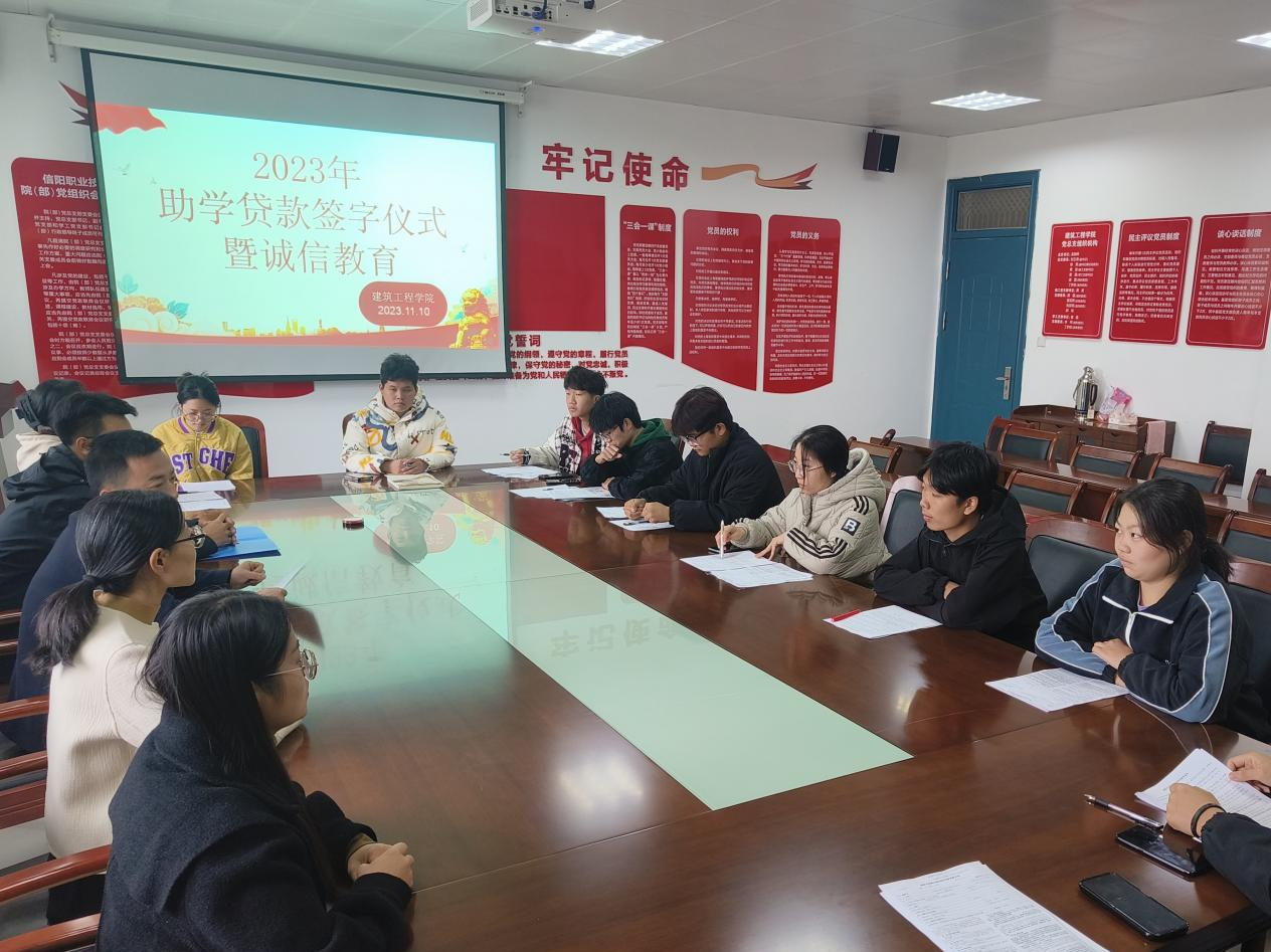 为落实高校国家助学贷款政策,加强对学生的诚信教育,根据学校资助中心工作安排,今年会jinnianhui于11月10日上午在3013会议室举行了2023年助学贷款签字仪式。学工办主任李何、资助专干孙浩和贷款学生辅导员参加签字仪式。