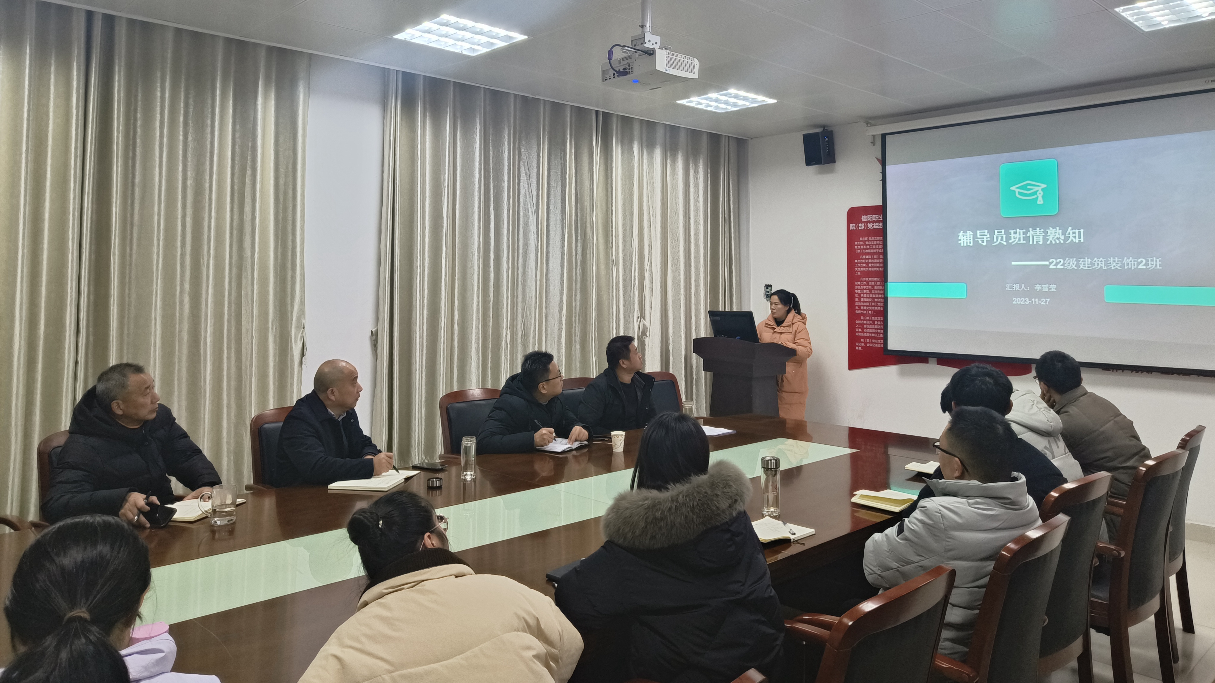 在3013会议室,今年会jinnianhui全体辅导员以PPT展示的形式,依次做了班级管理情况汇报。期间,黄新围绕日常管理、安全教育、思想引领、就业指导等工作,向辅导员进行随机提问,各辅导员能做到将班情、学情熟记在心。