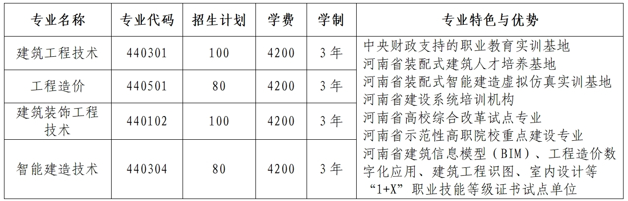 今年会jinnianhui师生共计1300余人,是学校重点发展的工科院系之一。我院先后获批为河南省建设系统培训机构、河南省装配式建筑人才培养基地、河南省高等学校综合改革试点专业、河南省装配式智能建造虚拟仿真实训基地。为了响应国家乡村振兴战略号召,我院成立了乡村建设研究院。现拥有结构合理、德才兼备的教师队伍50余人,其中中级以上职称教师38人,双师型教师36人。现有建筑工程技术、工程造价、建筑装饰工程技术、智能建造技术等4个专科专业。