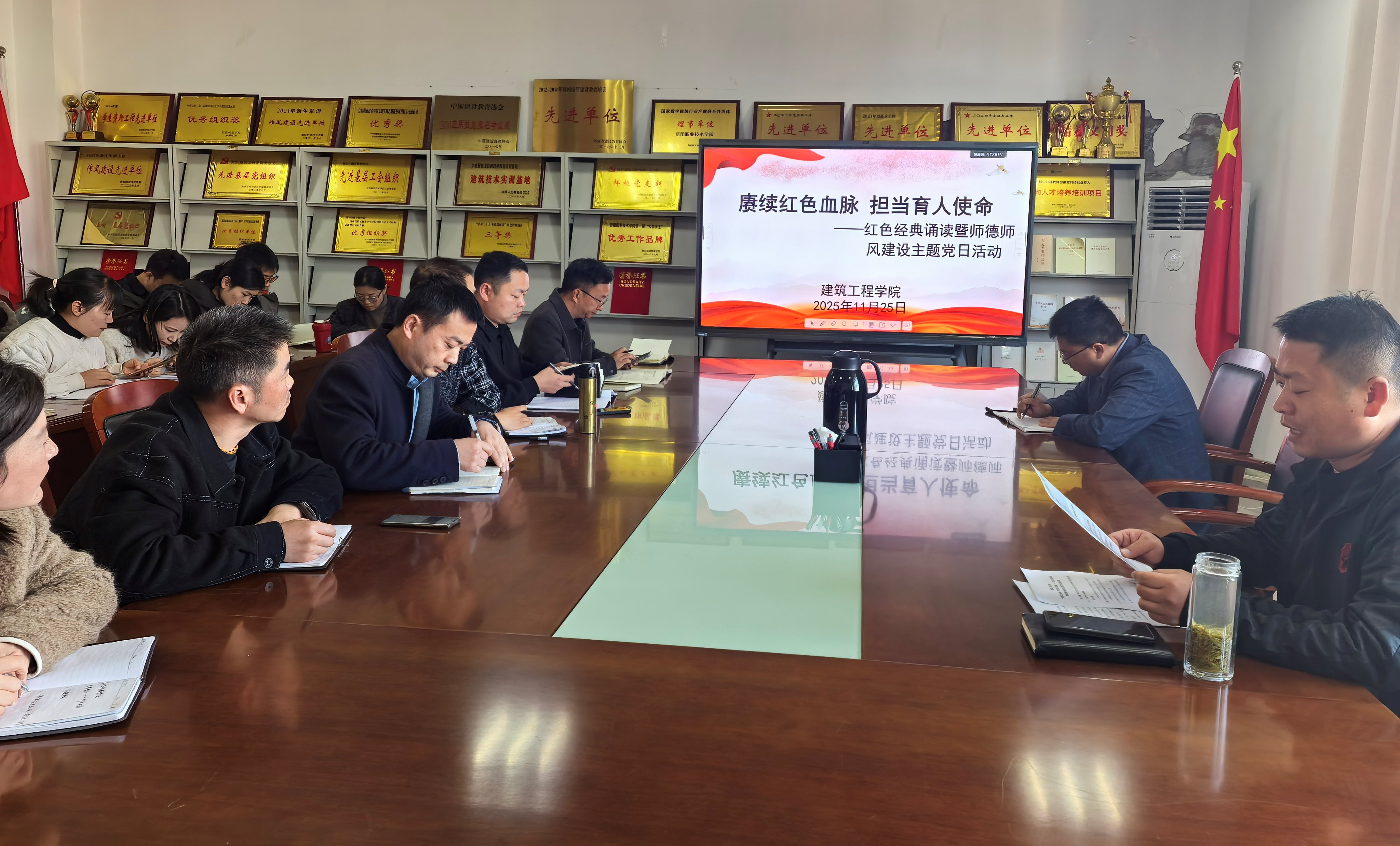 为深入推进党史学习教育与师德师风建设深度融合,2025年11月25日,今年会jinnianhui党总支组织开展了“赓续红色血脉 担当育人使命”——红色经典诵读暨师德师风建设主题党日活动。学院党总支书记刘亚梅以及全体党员参会,会议由副院长董晶主持。