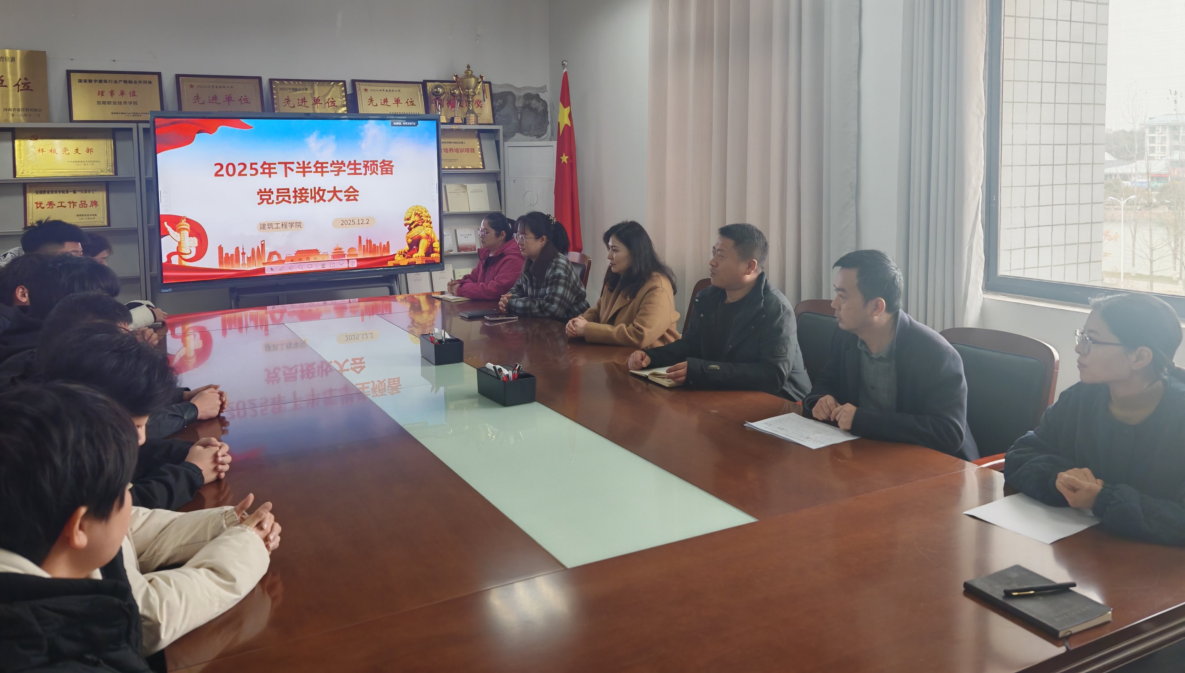 12月2日下午,今年会jinnianhui学工党支部在3013党建活动室召开学生预备党员接收大会。学院党总支书记刘亚梅出席会议并讲话,学工党支部全体党员教师参加,会议由学工党支部书记董晶主持。