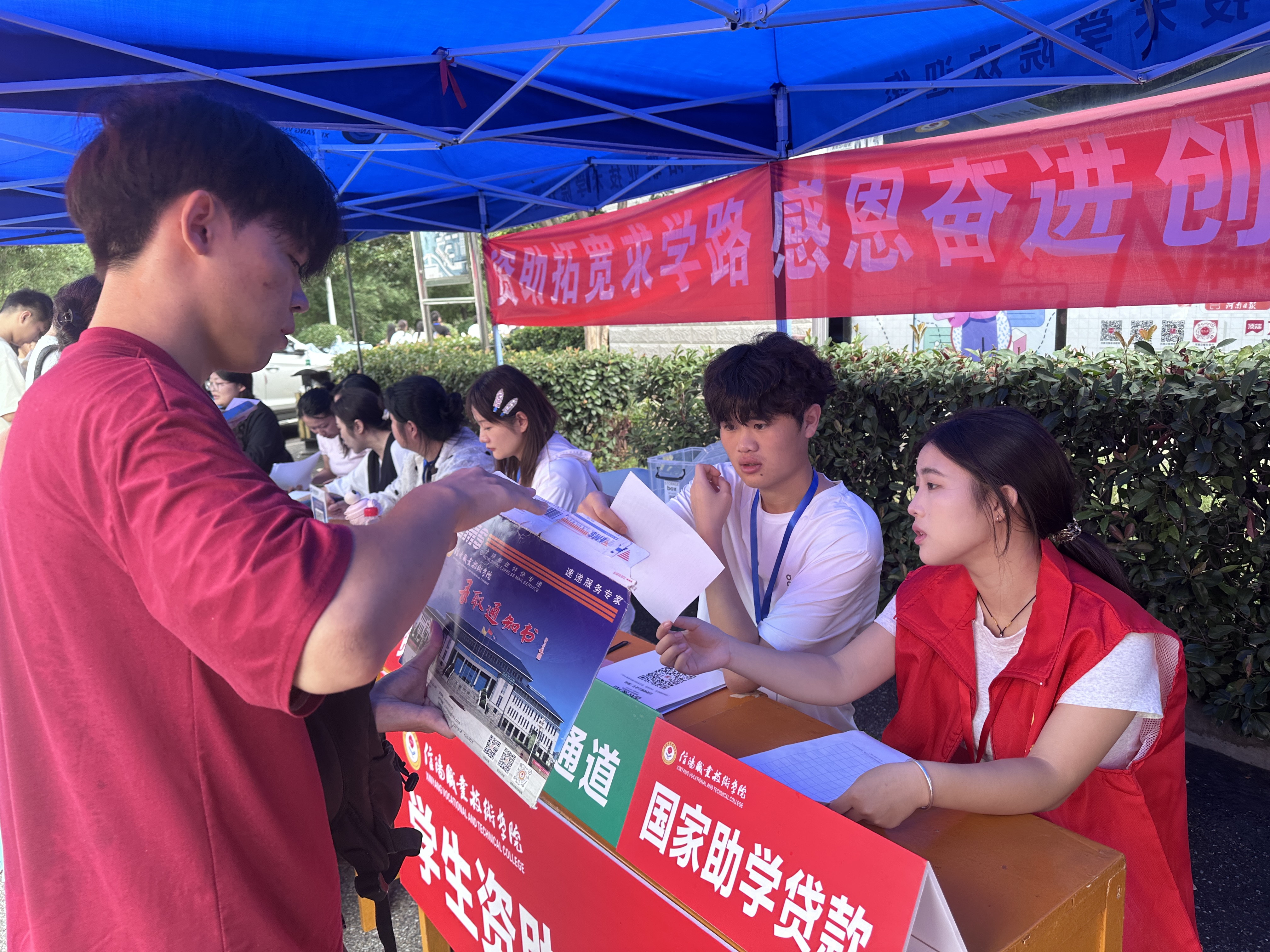 报到期间,学院在迎新现场设立“绿色通道”服务专区,安排资助专员与学生志愿者协同开展工作。资助教师现场讲解国家资助政策,解答学费缓缴、奖助学金、勤工助学等相关问题;志愿者协助办理手续、答疑解惑,确保困难学生入学无忧。