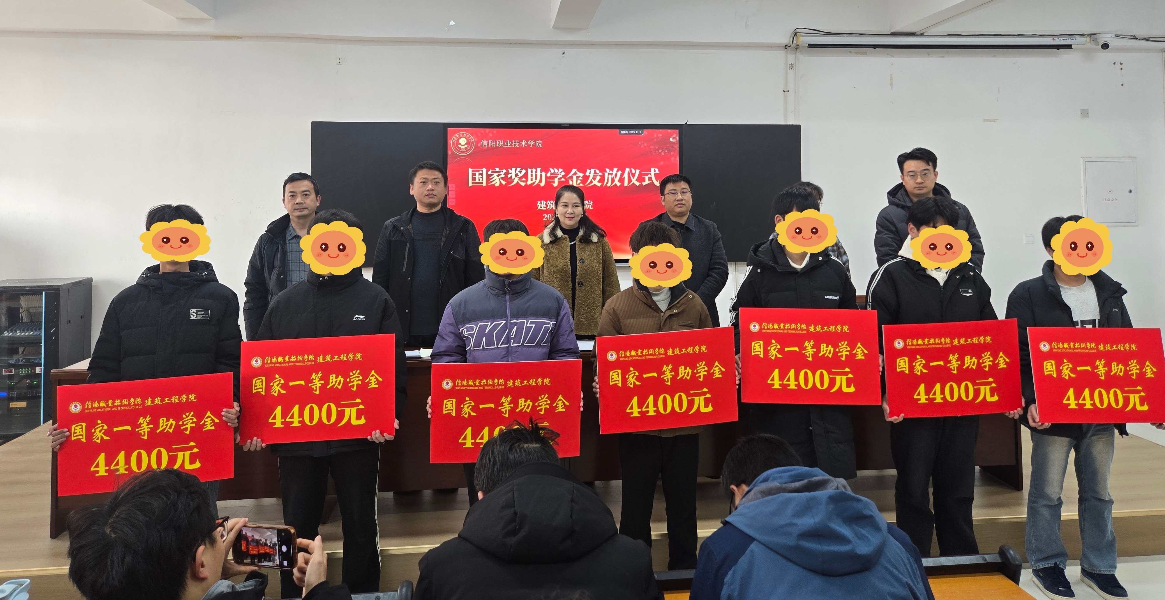 最后,与会师生与获奖学生合影留念,为本次发放仪式画上圆满句号。