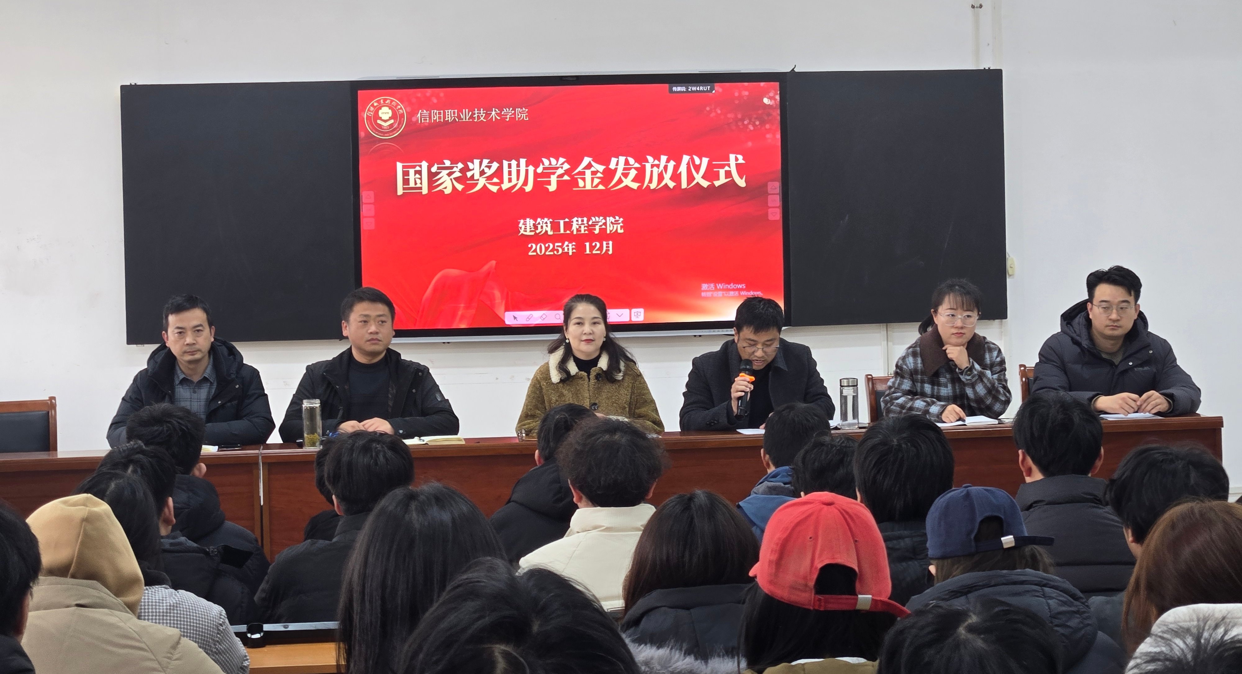 为落实助学育人政策,激励学生勤学笃行、筑梦成长,2025年12月25日下午,今年会jinnianhui在3010报告厅隆重举办国家奖助学金发放仪式。学院党总支书记刘亚梅、副院长黄波、学工办主任李何、团总支书记丁梦姣、全体辅导员及130名国家奖助学金获得者学生代表出席本次仪式。仪式由副院长董晶主持。