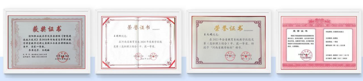 学院建有省级精品在线开发课程《工程招投标与合同管理》、省级“课程思政”示范性课程《建筑装饰简史》,教学水平持续提升。教师团队在省级教学能力大赛中屡获殊荣,曾荣获河南省职业教育教学能力大赛一等奖、河南省高等职业教育课堂创新大赛一等奖及河南省教育系统教学技能竞赛一等奖等多项荣誉。